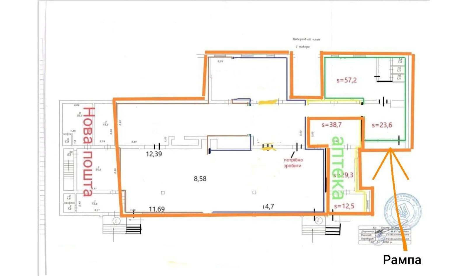 Тип: торгівельні площі, кафе, бар, ресторан, об'єкт сфери послуг